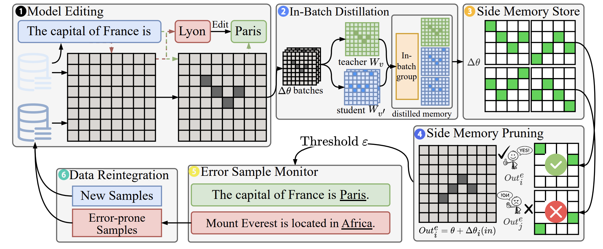 - Frequent Knowledge Fusion with Locality Guardrails: To prevent information loss, REPAIR increases the frequency of merging new knowledge with the model's existing parameter base. Critically, before any integration, it validates the update with "locality guards" to prevent unintended ripple effects on unrelated knowledge. This ensures that fixing one problem doesn't accidentally create another.